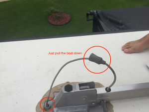 The last picture shows what the boot looks like once its put back into place. He explained that limbs, wind, etc.. will move that little boot up and that he used lap sealant around the bottom to keep it from working itself back up the wire. I haven’t done that yet but Im very much aware of it now.